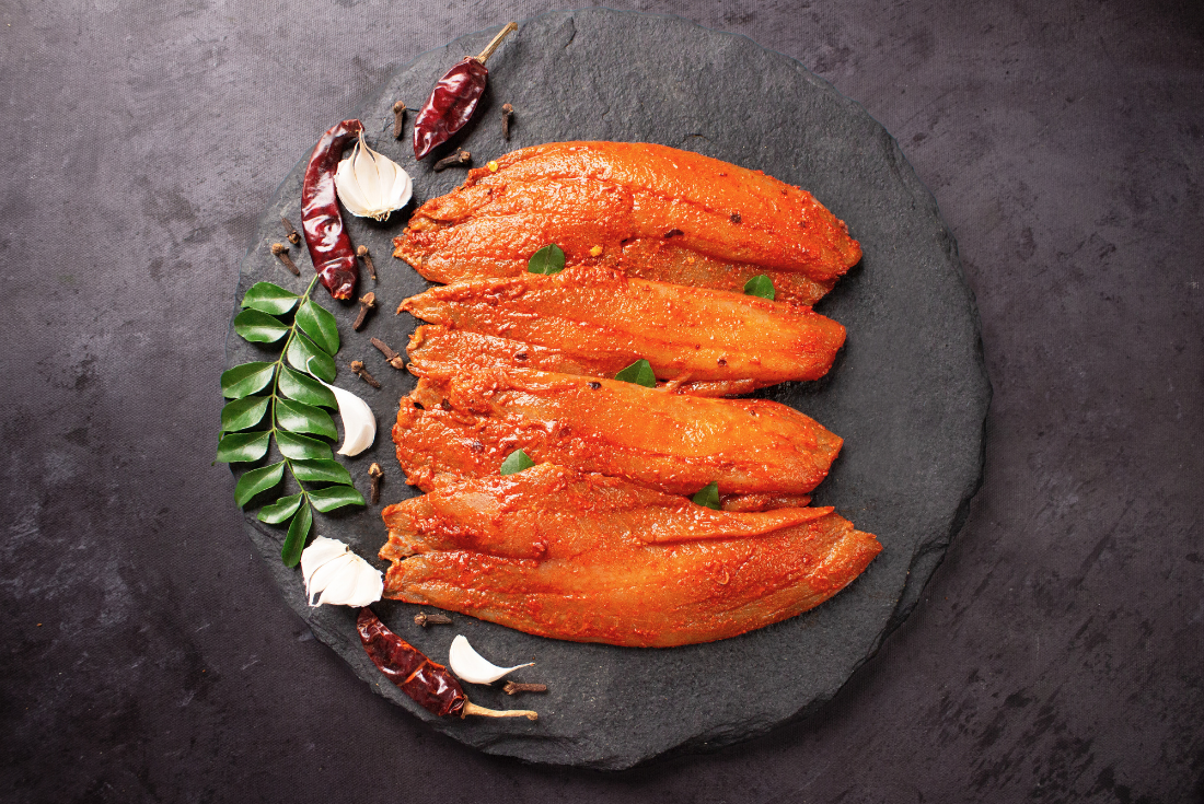 Experience the delectable taste of our Protein Rich, Quality Assured Tilapia Skinless and Boneless Fillets, marinated in our signature Chilli Garlic marinade. The Chilli adds a nice kick of heat, while the garlic adds a rich, earthy flavour. And with our vacuum-sealed packaging, you can trust that they'll stay fresh until you're ready to cook.
