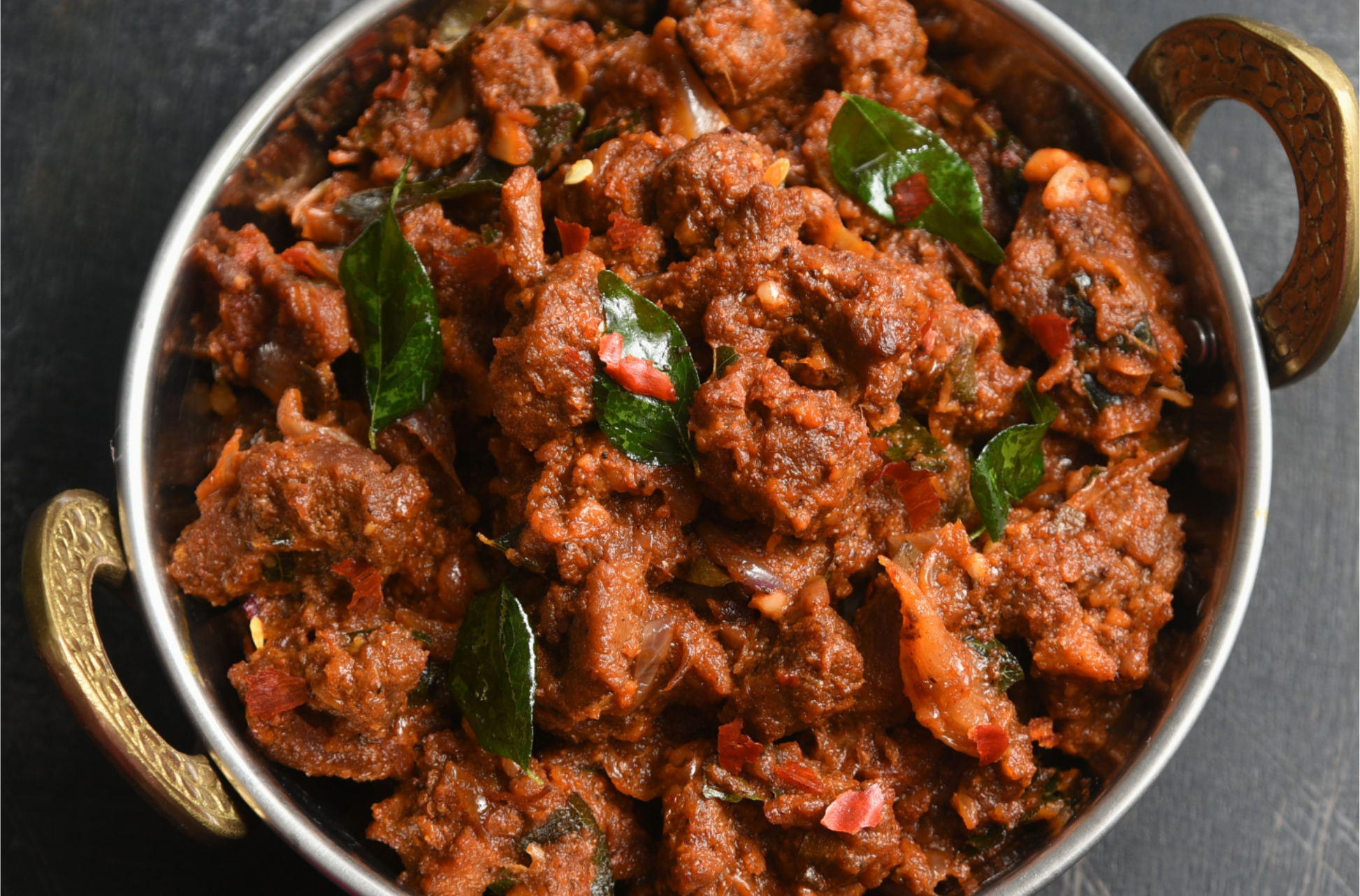 Indulge in the spicy and aromatic flavours of Mutton Ghee Roast, a popular South Indian dish where succulent mutton pieces are cooked in a rich and flavourful ghee-based masala, creating a lip-smacking delight.
