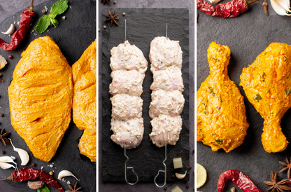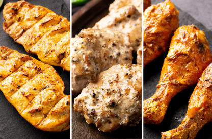 read moreChicken Tandoori Boneless Breast: 380-400gChicken kalimiri Tikka: 380-400gChicken Tangdi Kebab: 480-500gIntroducing our Assorted Tandoori Platter - a culinary celebration featuring Chicken Tandoori Boneless Breast, Chicken Kalimiri Tikka, and Chicken Tangdi Kebab, designed to delight a party of four. This vibrant assortment boasts the authentic essence of tandoori flavours. Whether air fried, oven-baked, pan-seared, or grilled, it promises a diverse taste experience, making it the perfect centerpiece for your gatherings.