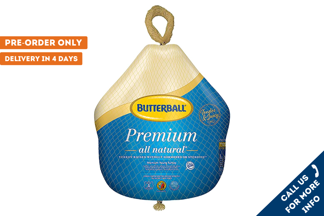 Pre-order 2 days ahead—call +91 7700060006! This is the turkey of legends! Butterball, the trusted American classic, comes pre-brined and self-basting for a foolproof, mouthwatering experience. Renowned for its consistent juiciness and signature holiday flavor, this premium turkey is ready to be the star of your festive table .