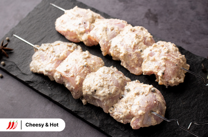 Discover the rich flavours of our Chicken Kalimiri Tikka, where succulent pieces of chicken thigh meet a blend of ground black pepper and cheese in a mild creamy marinade. Whether air fried, oven-baked, pan-seared, or grilled, each bite offers a simple yet delightful combination of spices and creamy goodness, ensuring a satisfying culinary experience.