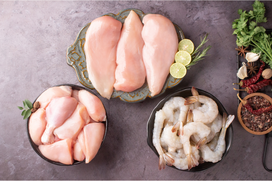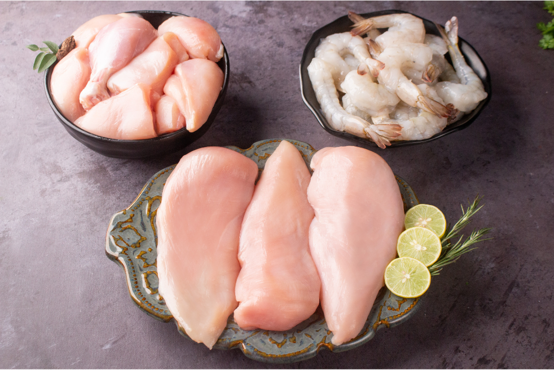 Chicken Curry Cut : 500g Chicken Breast Boneless : 450g Large Deveined & Tail On : 500g Prepare to embark on a gastronomic adventure with our exquisite Chicken and Large Prawns Combo. Indulge in this harmonious fusion of flavors, as the delectable chicken and the large, juicy prawns come together to create a culinary masterpiece that will leave meat lovers craving for more.