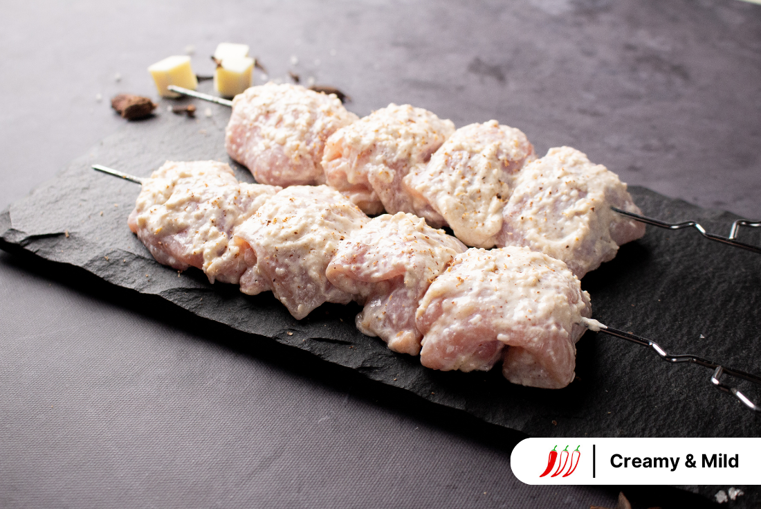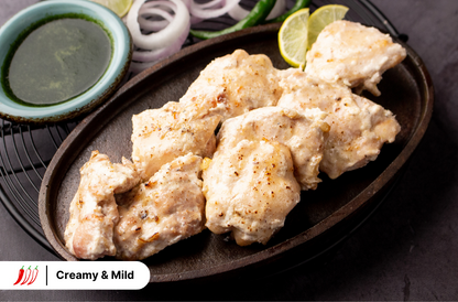 read moreSavour the authentic taste of our Chicken Malai Tikka, where tender chicken thigh pieces are expertly marinated in a delightful blend of mild spices and creamy cheese flavours. This unique combination creates a luxurious, indulgent taste experience that sets it apart. Each bite promises a culinary adventure like no other. For optimal taste, cook in an air fryer or oven; alternatively, use a pan or grill.