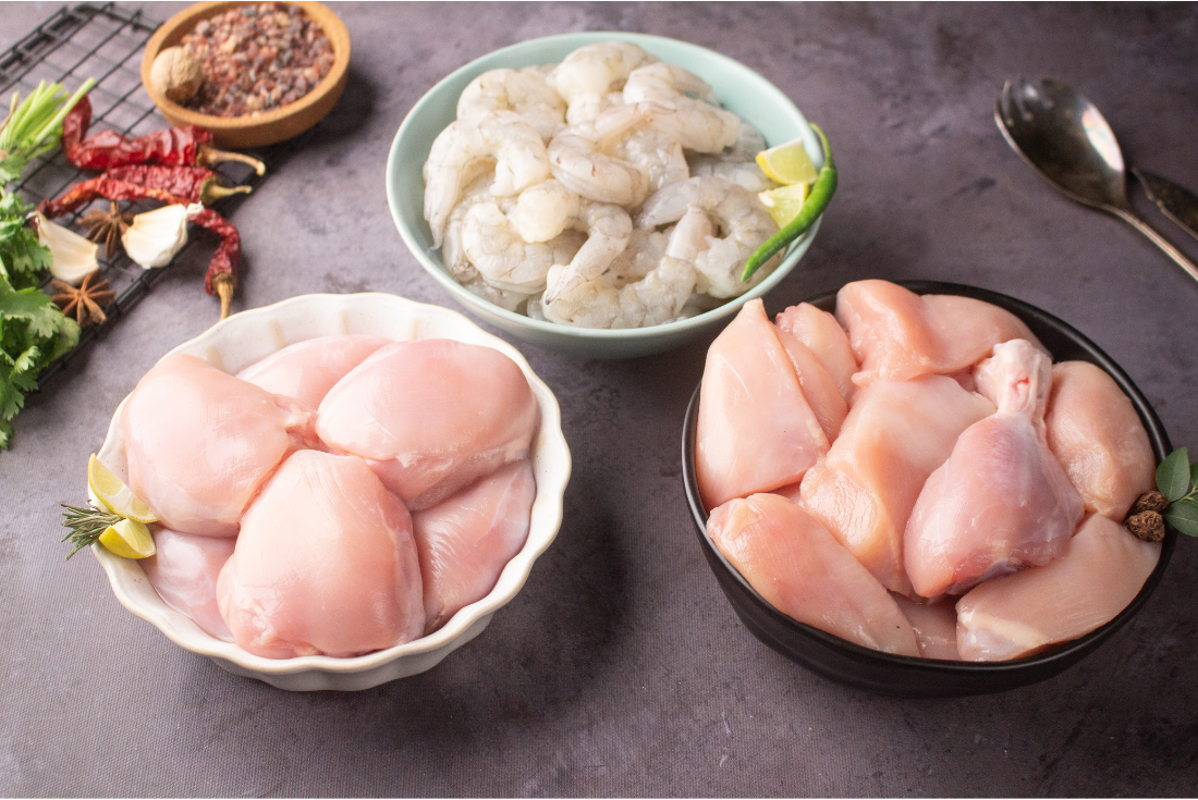 read moreChicken Curry Cut : 500g Chicken Boneless Thigh : 450g Deveined & Cleaned Med Prawns : 500gGet ready to satisfy your cravings with the ultimate combo for meat lovers - our tantalizing fusion of Chicken and Prawns. Indulge in this mouthwatering combination that brings together the best of land and sea, delivering an unforgettable culinary experience.