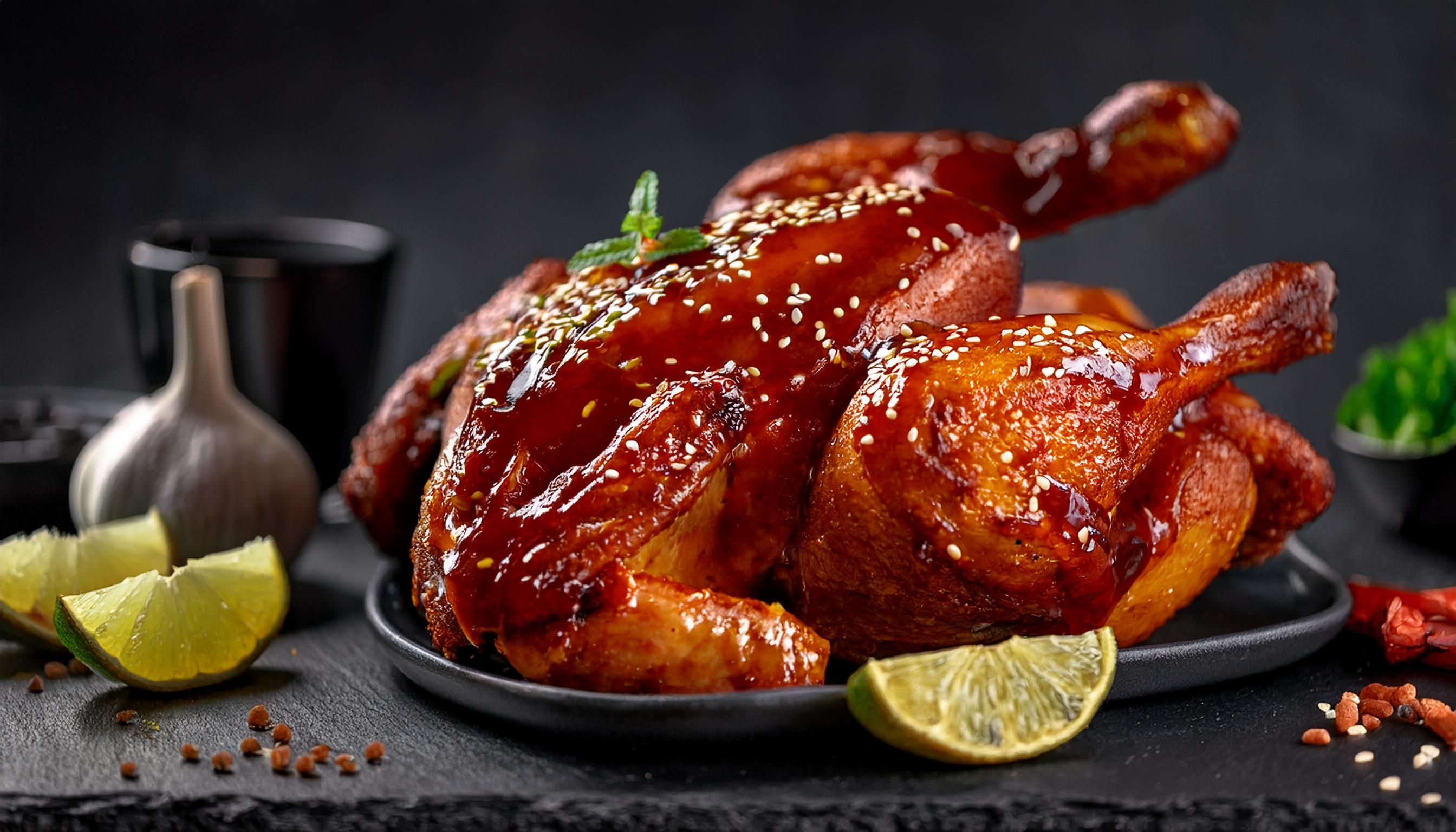 Experience the fusion of flavors with our Chicken Whole in Teriyaki Chilli (With Skin), marinated in a rich, savory teriyaki sauce with a hint of spicy chili. This dish features tender, juicy chicken without the skin, ensuring a healthier option without compromising on taste. Perfect for a flavorful and nutritious meal.