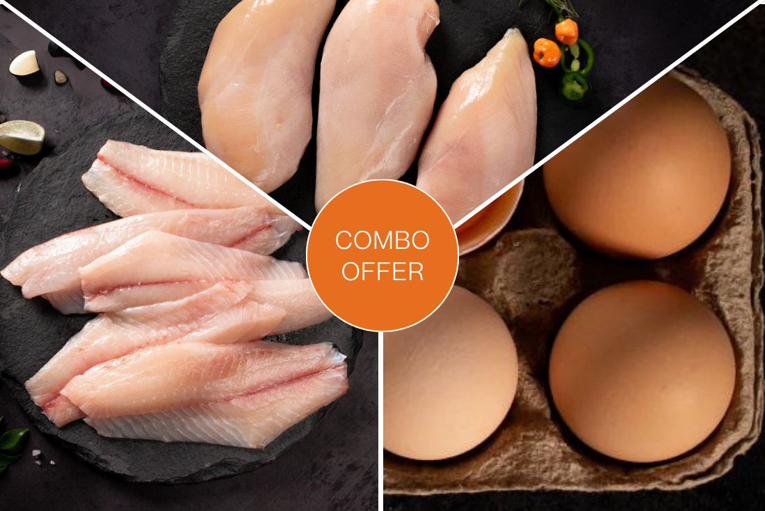 Fresh Tilapia - Fillet (Net 1kg) + Chicken Breast Boneless (Net 400gm) + Brown eggs - Pack of 6 Pcs