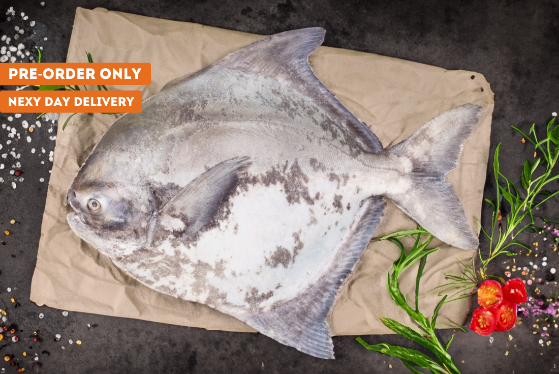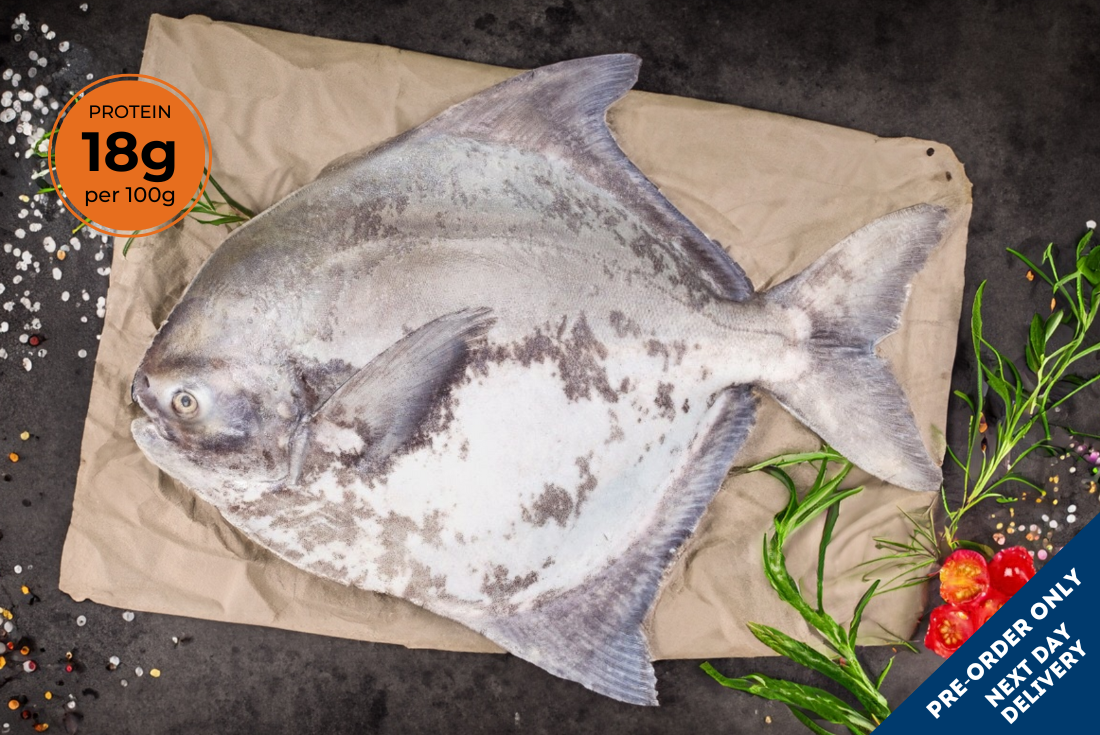 Chinese Pomfret, is a seawater fish with a rich flavour and a single bone. It can be fried or steamed, and is a great source of protein while being low in calories. Fresh Chinese Pomfret - whole are Vacuumed packed to preserve its freshness, and delivered straight to your door.