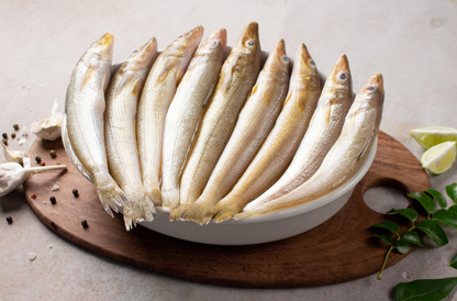 Ladyfish, also known as Kane, Poovan, or Kilanga, is thoroughly cleaned and gutted to remove any impurities. With a firm texture and very few bones, this fish is ideal for fried dishes, and its mild flavour makes it a versatile ingredient in various preparations. It is rich in Omega-3 fatty acids, which are known to promote heart health and reduce inflammation in the body.