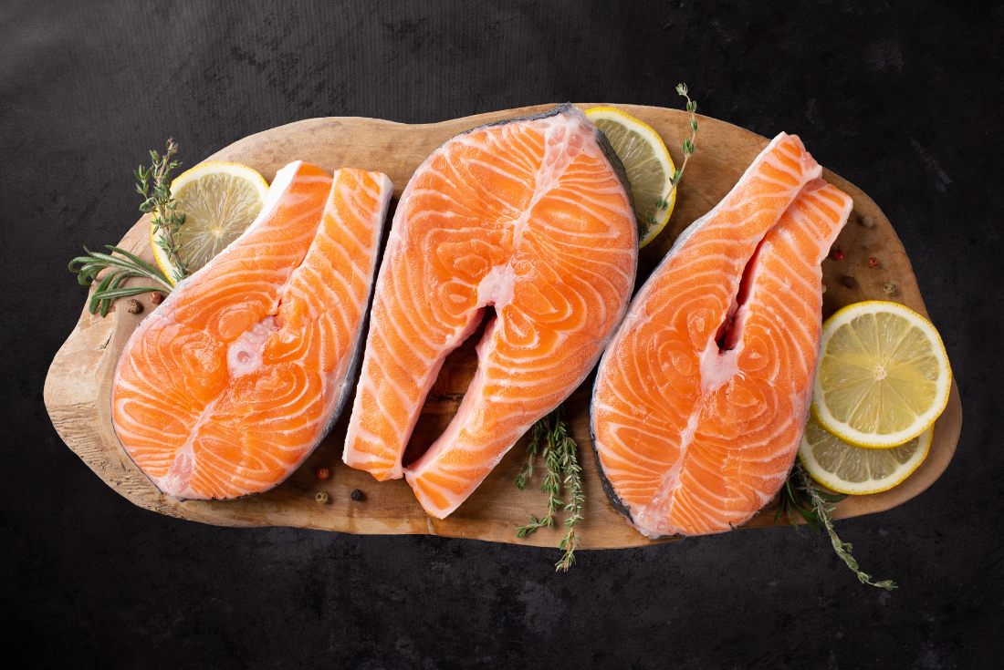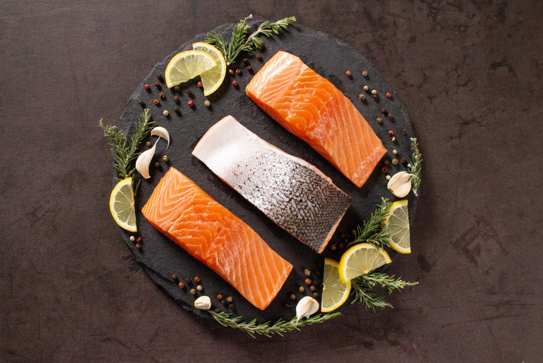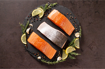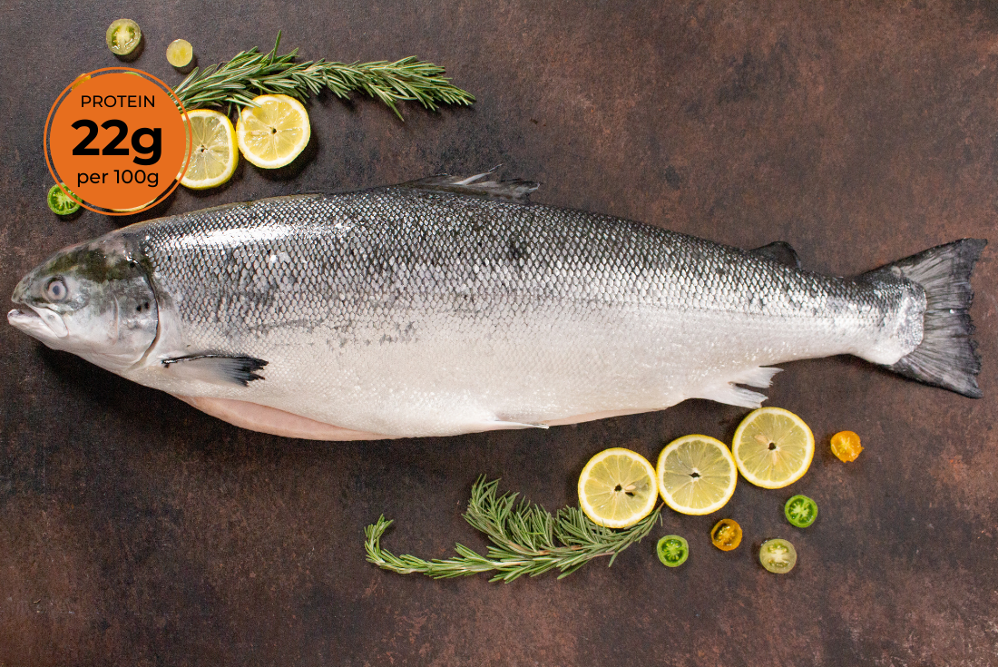 The ultimate combination of exotic flavours and healthy indulgence with our freshly flown-in Norwegian Salmon fish. Rich in Omega-3's and bursting with nutrients, our Salmon is carefully cut by expert butchers, ensuring hassle-free preparation and a delectable dining experience. our fresh Norwegian Salmon is delivered to you vacuum-packed and ready to be transformed into a culinary masterpiece. What sets our Salmon apart is its pure and natural composition, free from any chemicals or preservatives.