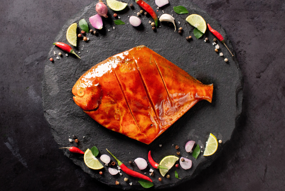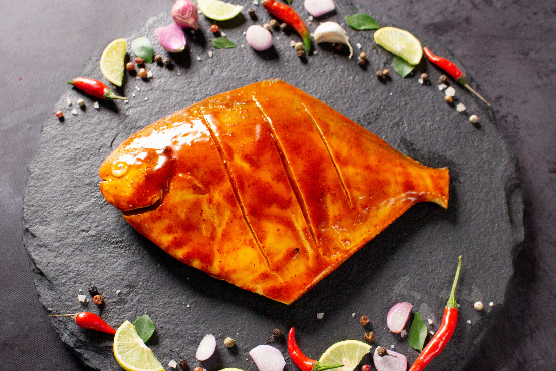 Savor the authentic taste of Amritsari with our Fresh Pomfret Medium in Amritsari flavour! Each bite is a burst of mouthwatering flavours that truly delights the senses. The firm yet tender flesh of the pomfret is perfect for grilling, roasting, or pan-frying, allowing you to experience the true essence of Amritsari cuisine. Elevate your culinary creations and indulge in the delightful taste of Amritsari Pomfret today!
