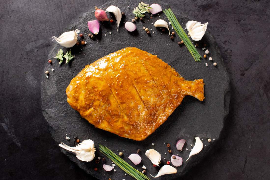 Indulge in the irresistible Fresh Pomfret Medium in Butter Garlic flavour! This delectable seafood option is infused with the rich and creamy essence of butter garlic, creating a flavour that is both comforting and indulgent. With every bite, you'll experience the perfect balance of buttery richness and aromatic garlic, making it a true delight for your taste buds. The firm yet tender flesh of the pomfret lends itself beautifully to the butter garlic infusion, creating a mouthwatering seafood dish that can be grilled, roasted, or pan-fried to perfection.