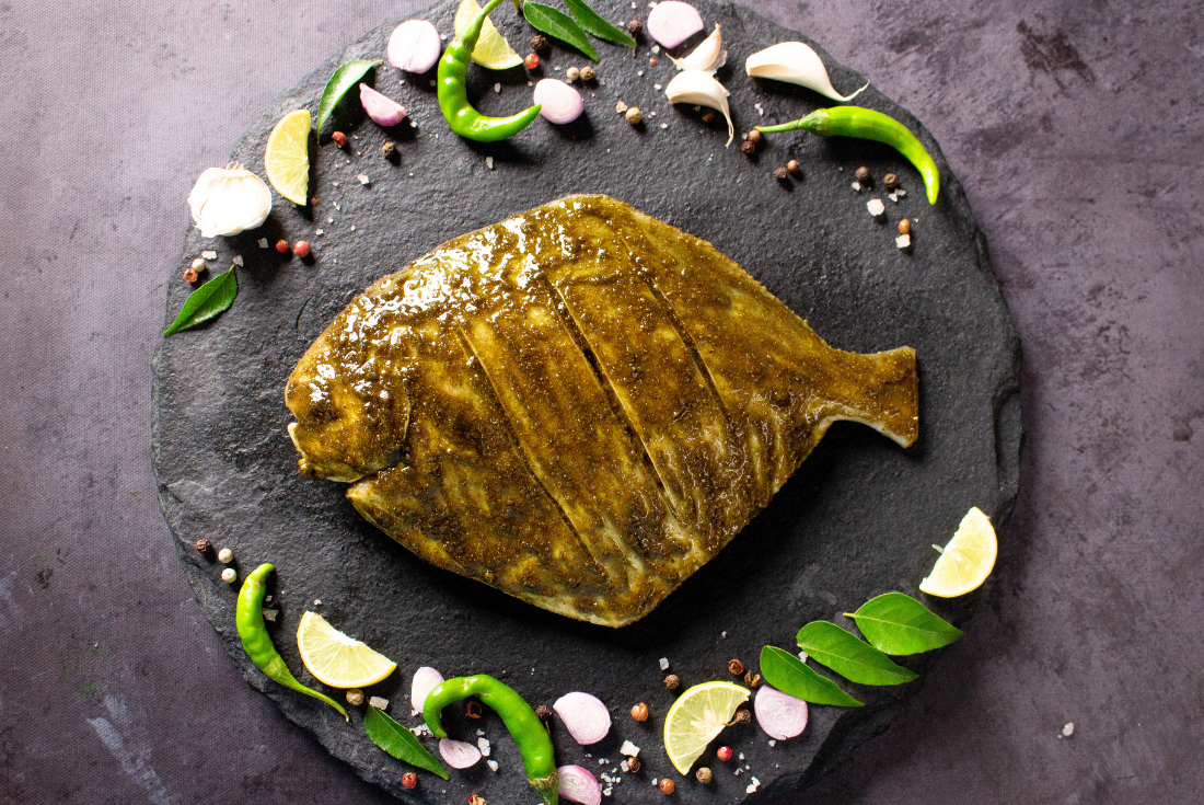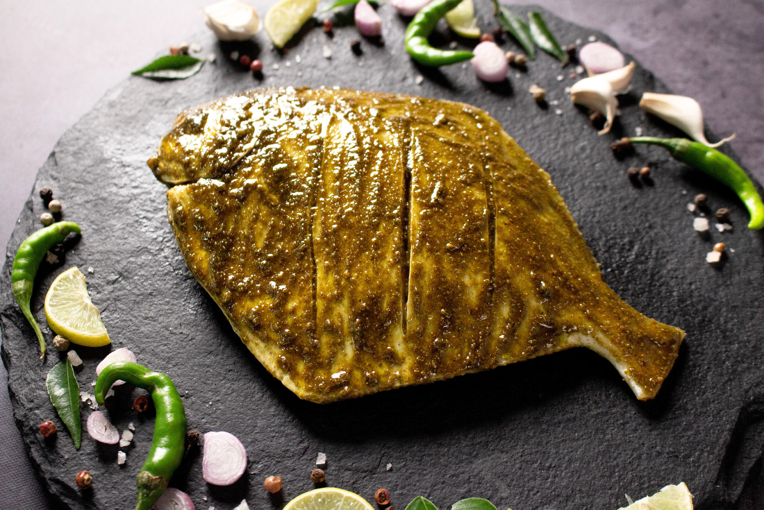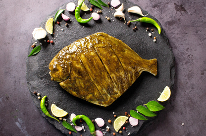 Experience the incredible flavours of the mountains with our Fresh Pomfret Medium in Pahadi flavour! This exquisite seafood option captures the essence of the Pahadi region, known for its vibrant and aromatic cuisine. Each bite of Pahadi Pomfret is a journey to the hills, with its unique blend of herbs and spices that create a truly tantalizing taste. The firm and succulent flesh of the pomfret perfectly absorbs the Pahadi flavours, making it a delightful choice for grilling, roasting, or pan-frying.
