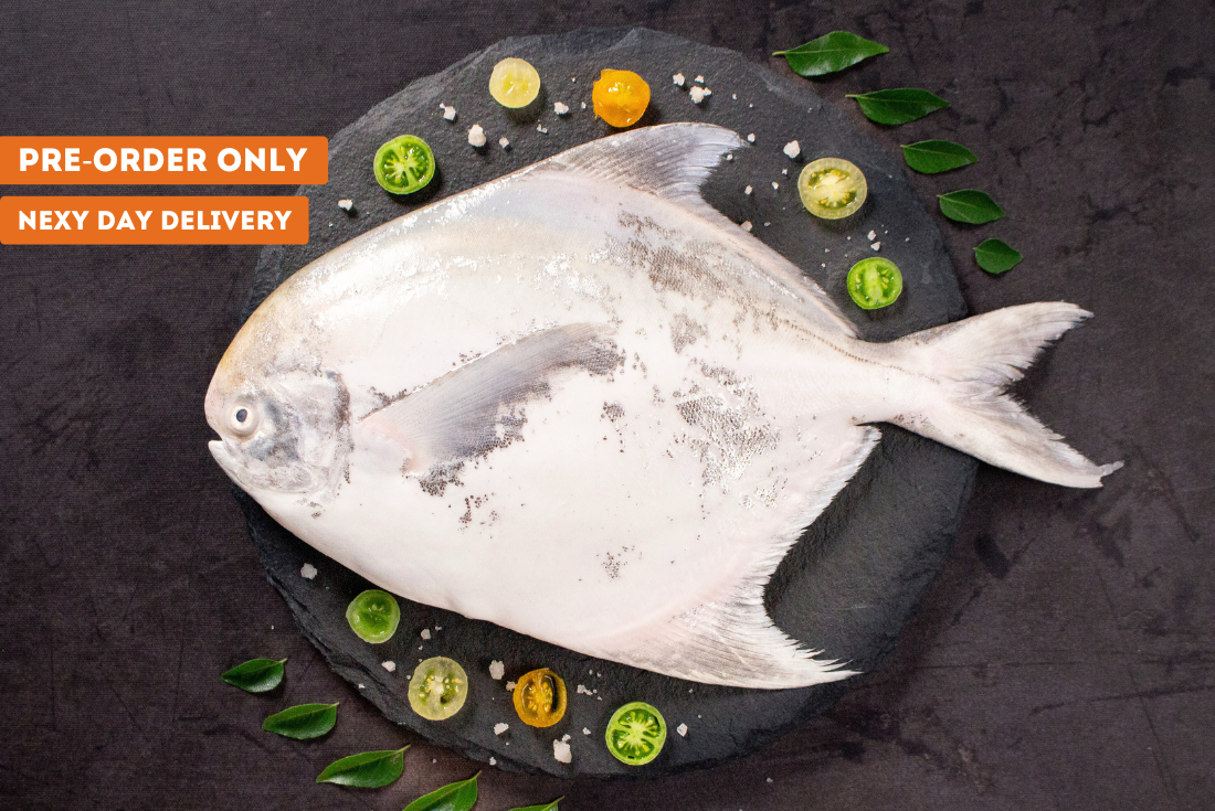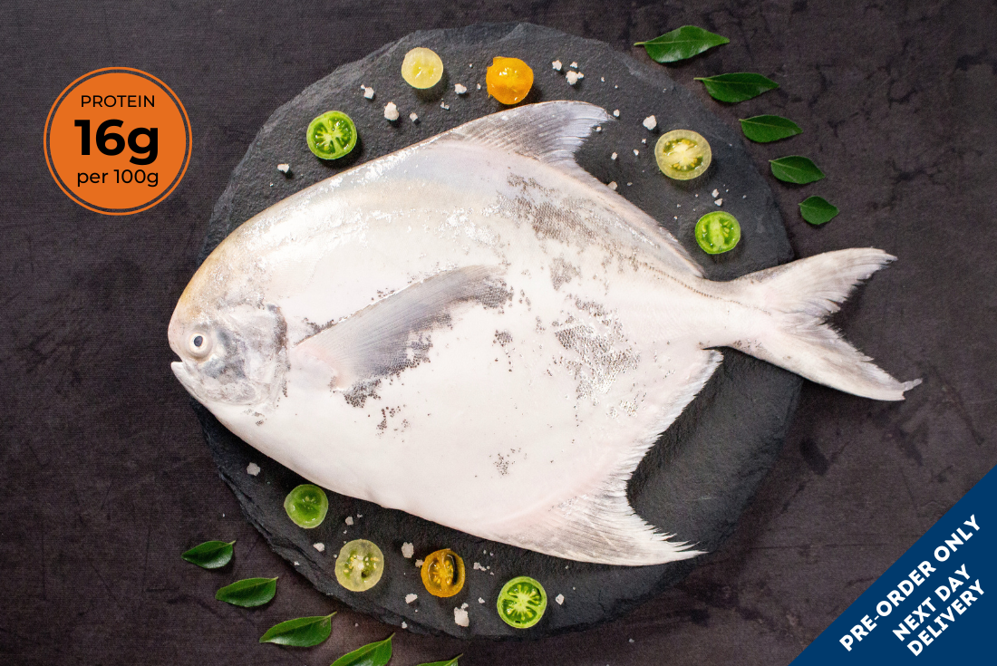 read moreFresh Silver Pomfret Super is the ultimate choice for an extraordinary experience. With its larger size, this fish offers a generous portion of firm, flavourful meat that is perfect for grilling, baking, or frying. Carefully selected for its freshness and quality, it is sure to impress your guests and elevate any meal. Indulge in the delicious taste of the sea with our Fresh Silver Pomfret Super.