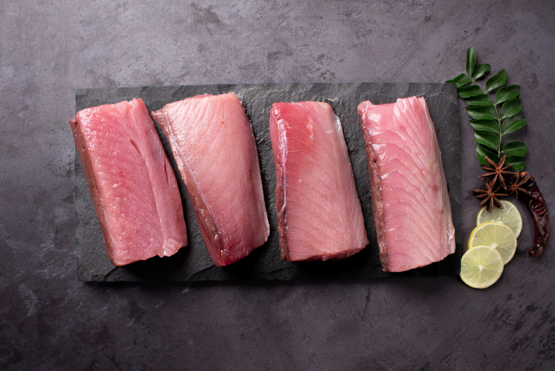 read moreDiscover the Finest Fresh Tuna fish, Also known as Choora fish, Kera fish, and Chura fish. Sourced from pristine waters, Yellowfin Tuna is known for its superior taste, this exquisite fish delights as an excellent source of vitamin B12, essential for DNA synthesis. These Tuna fillets undergo meticulous cleaning, expert cutting & vacuum packaging. With its deep red flesh, Yellowfin Tuna is cherished for its versatility, whether enjoyed as sushi, or in flavourful curries.