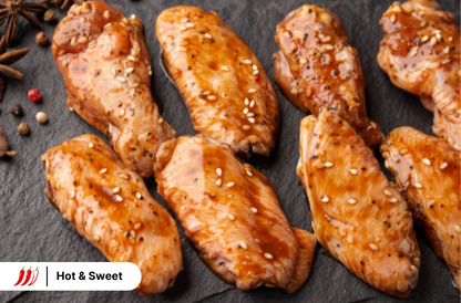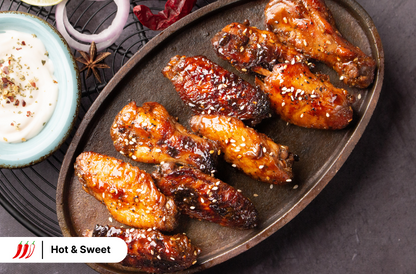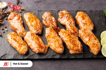 Honey meets spicy Sriracha in our delectable Honey Sriracha Wings. Each wing boasts the perfect blend of sweet honey and fiery Sriracha, creating an irresistible flavour that will leave your guests drooling. Whether air fried, oven-baked, pan-seared, or grilled, these wings promise a mouthwatering experience, elevating any gathering with their bold and enticing taste