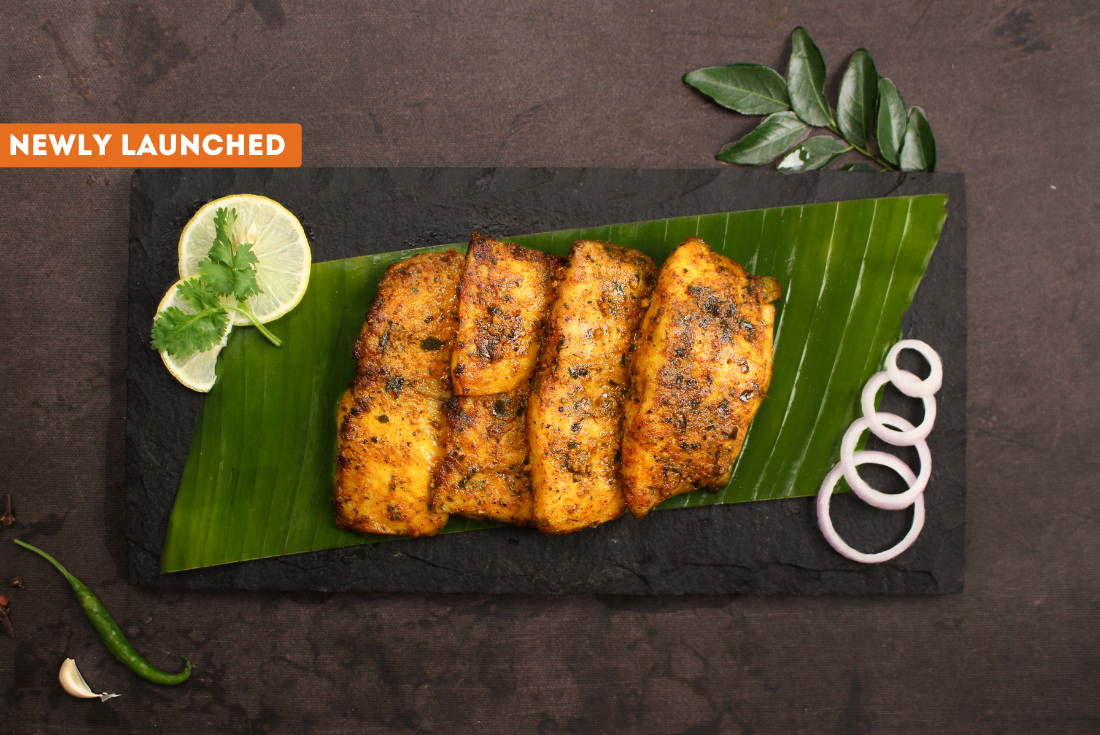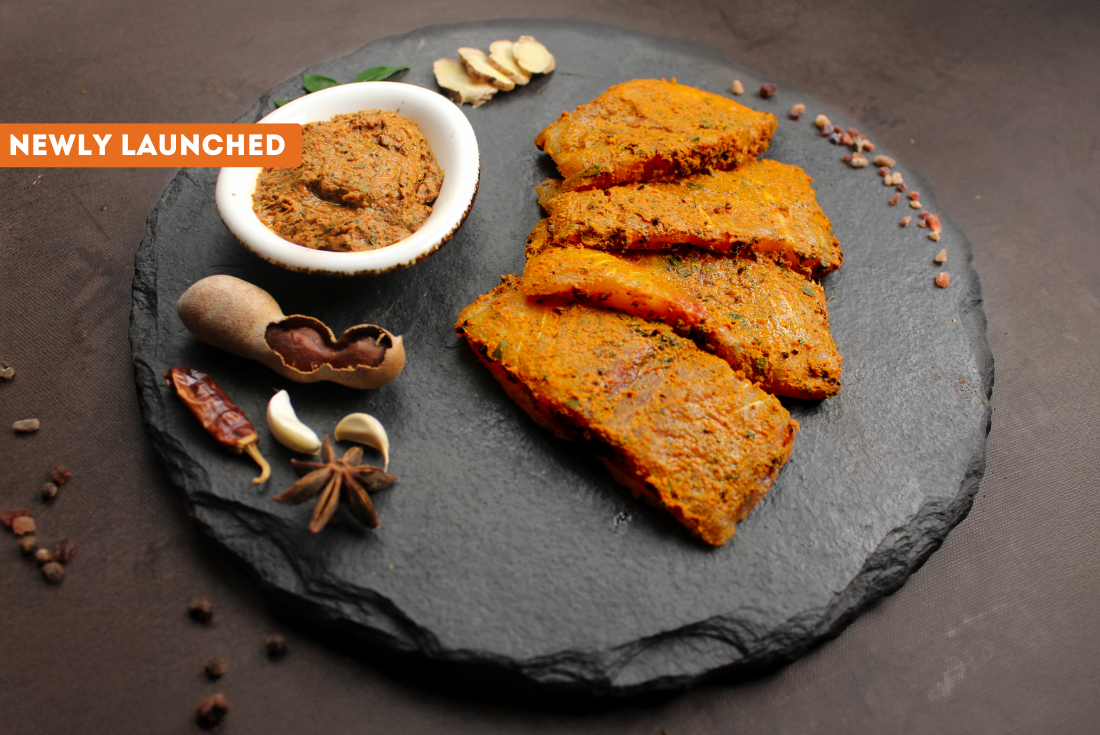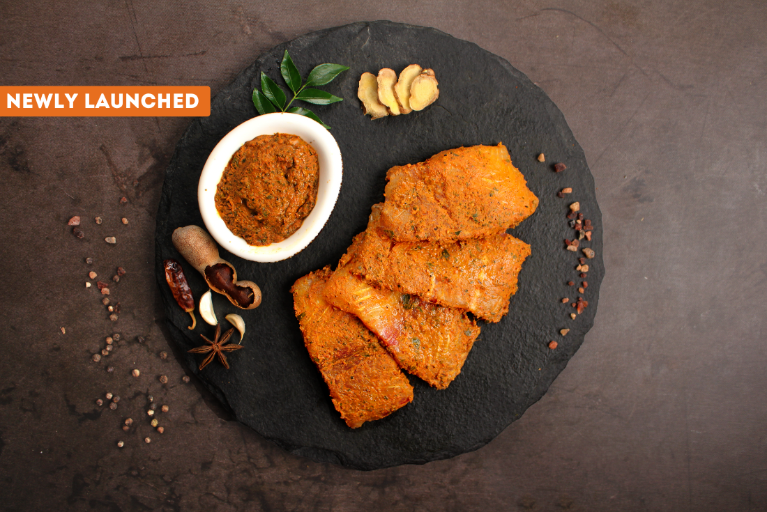 Fresh Indian Basa Chunks in malabar masala. Soft, delicate Basa pieces coated in a fragrant mix of coconut and spices. The marinade adds warmth and depth without overpowering the fish, making it an easy choice for a comforting, flavourful meal