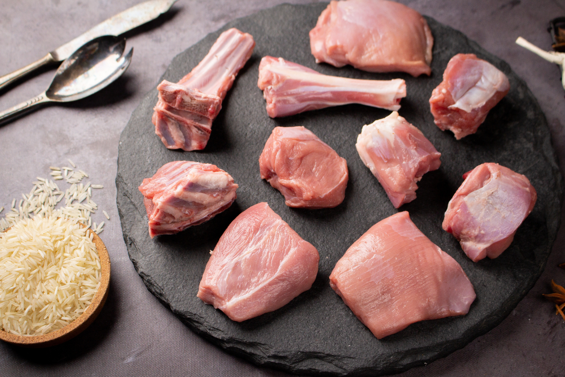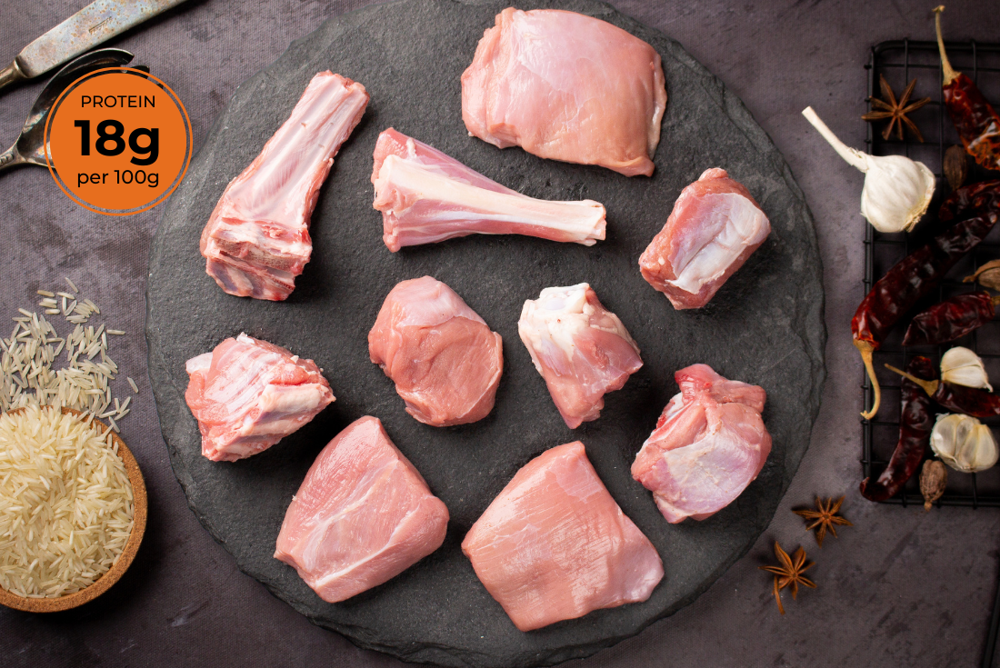 read moreEmbark on a culinary journey with our Mutton Biryani Cut Raw an exquisite selection of premium mutton pieces tailored for crafting the perfect biryani experience. Revel in the succulence and tenderness of our biryani cut, meticulously chosen to elevate your biryani to new heights. Each piece promises a symphony of flavors, delivering a delightful blend of meaty goodness that transforms every bite into a gastronomic delight. Elevate your biryani preparation with the unparalleled richness of our mutton biryani cut.