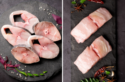 Surmai Steaks + Rawas FilletEmbark on a gastronomic journey with our Seafood Feast Special, featuring the finest Surmai Steaks and Rawas Fillet. savour the ocean's bounty with the exquisite taste of Surmai, expertly paired with the delicate richness of Rawas. Elevate your dining experience to new heights, indulging in the perfect harmony of flavours and freshness.