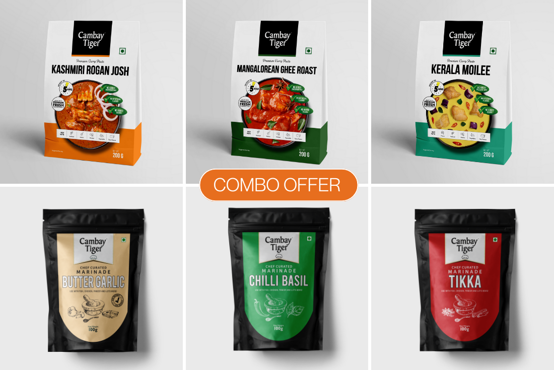read moreKashmiri Rogan Josh + Mangalorean Ghee Roast + Kerala Moilee Curry + Chef Currated Butter Garlic Marinade + Chef Currated Chilli Basil Marinade + Chef Currated Tikka Marinade (1 Pack each)