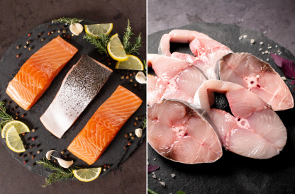 read moreSalmon Fillet + Surmai SteaksUnveiling the Ultimate Fish Feast, featuring premium Salmon Fillet and succulent Surmai Steaks. Dive into a world of exquisite flavours and textures. Each piece is meticulously chosen, promising unparalleled freshness. Elevate your dining experience with this perfect blend of rich, indulgent seafood delights.